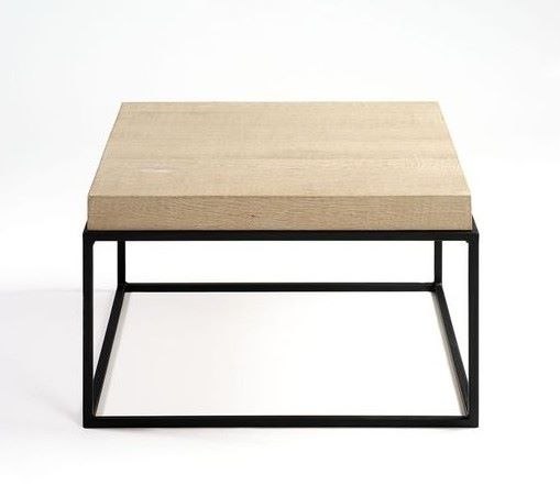 Mesa Auxiliar Cuadrada en Roble Blanqueado y Metal Negro