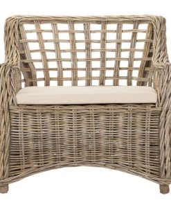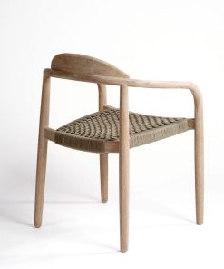 Elegante silla de madera de roble envejecido con respaldo de rejilla natural y asiento tapizado en lino. Su diseño refinado y sus detalles tallados evocan el estilo clásico francés, ideal para aportar un toque sofisticado a cualquier espacio.